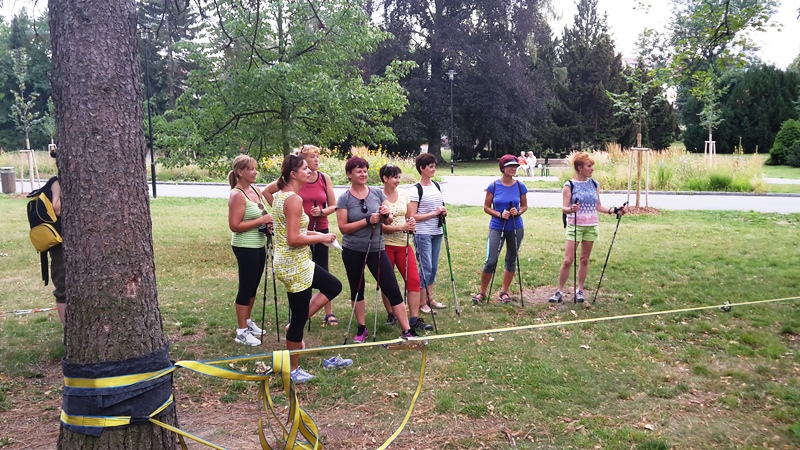 Jako parádní překvapení si každá skupina mohla vyzkoušet ve Smetanových sadech slack line.
